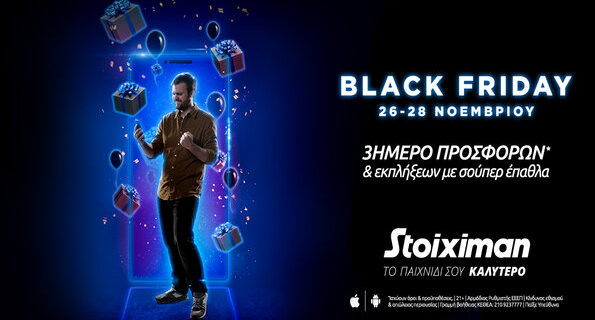 Αυτή η Παρασκευή είναι ξεχωριστή και θα κρατήσει… τρεις μέρες! Η Black Friday παίζει στη Stoiximan με σούπερ προσφορές* & εκπλήξεις το τριήμερο 26 – 28 Νοεμβρίου για να κάνει το παιχνίδι σου καλύτερο!
