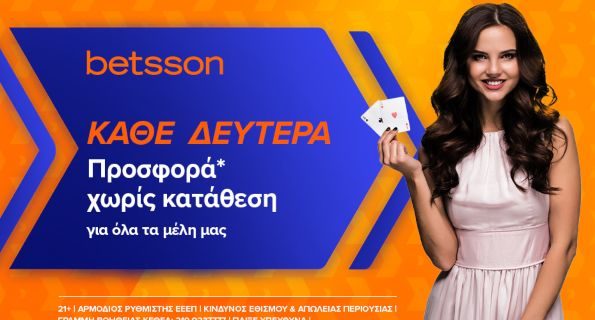 Κάθε Δευτέρα μία προσφορά* χωρίς κατάθεση για τους πελάτες της Betsson!
