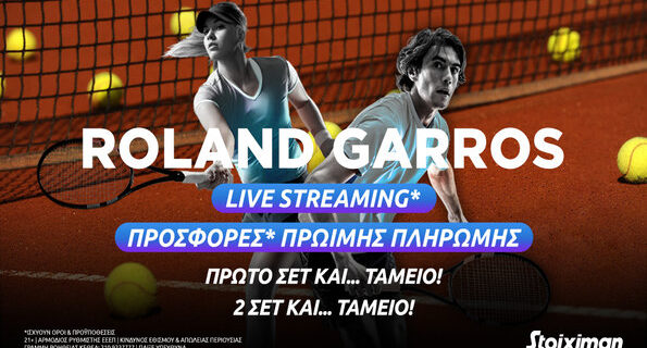 Φυσικά το Roland Garros, όπως όλα τα Grand Slams, είναι στη Stoiximan με Live Streaming*, πλούσιο live betting, αμέτρητα ειδικά στοιχήματα, Super Ενισχυμένες Αποδόσεις αλλά και μακροχρόνιες αγορές.